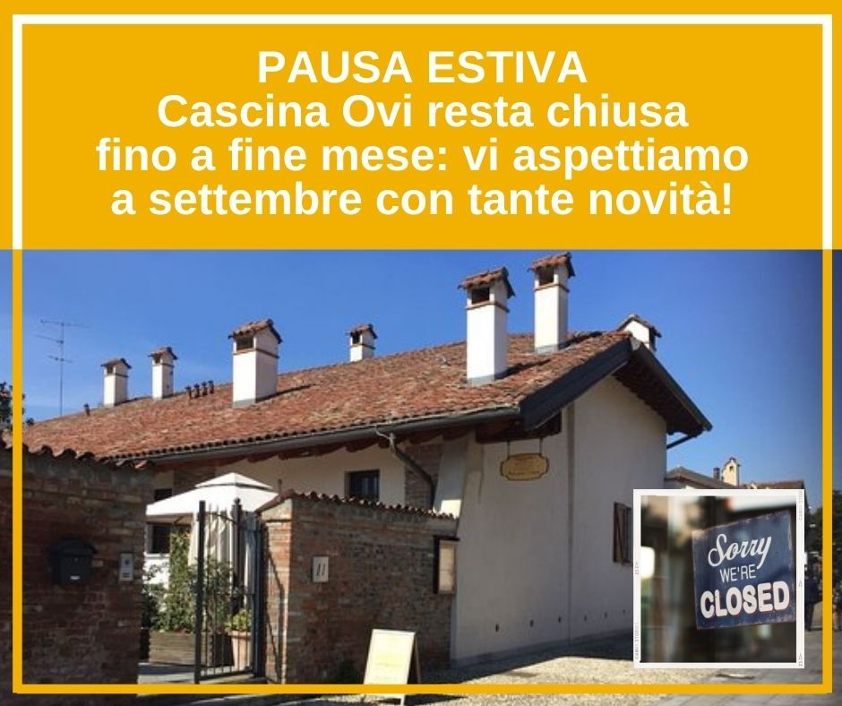 Pausa estiva Cascina Ovi resta chiusa fino a fine agosto: ci vediamo a settembre con tante belle novità. Buone vacanze a tutti voi! Condividi:TwitterFacebookMi piace:Mi piace Caricamento... Correlati Precedente Successivo